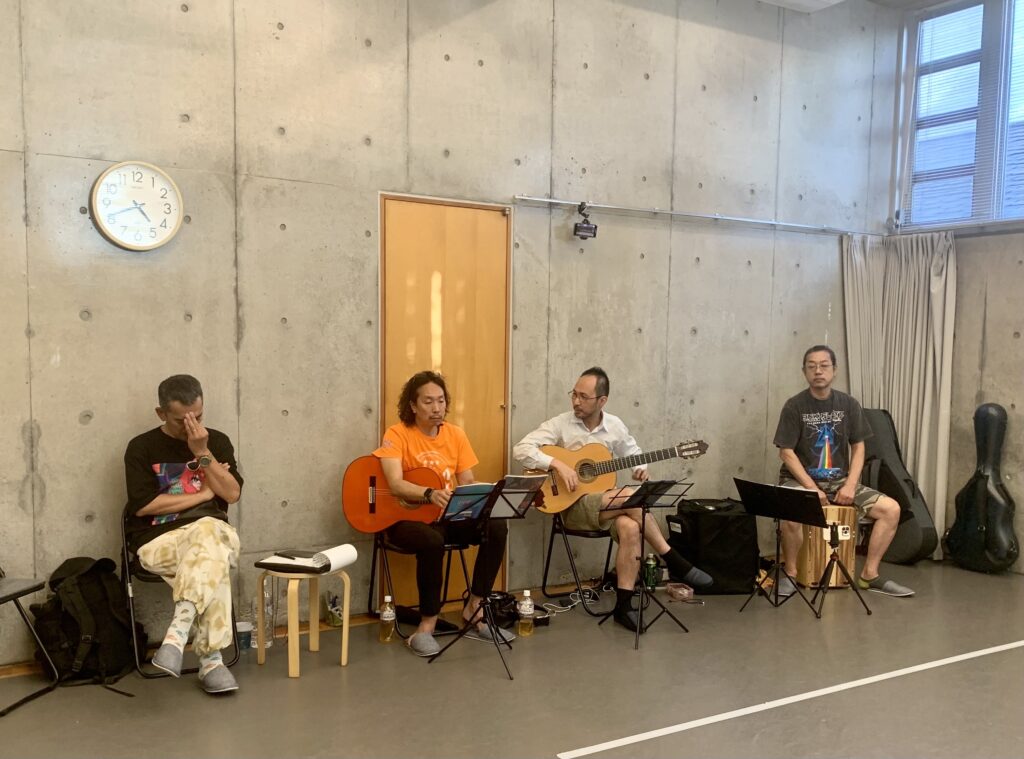 先週末、横浜からカンテの有田さん、大阪からギターのたかしくん、パーカッションのキム兄、三重チームのギター・キムキムをお迎えして、三重でのリハーサルでした!